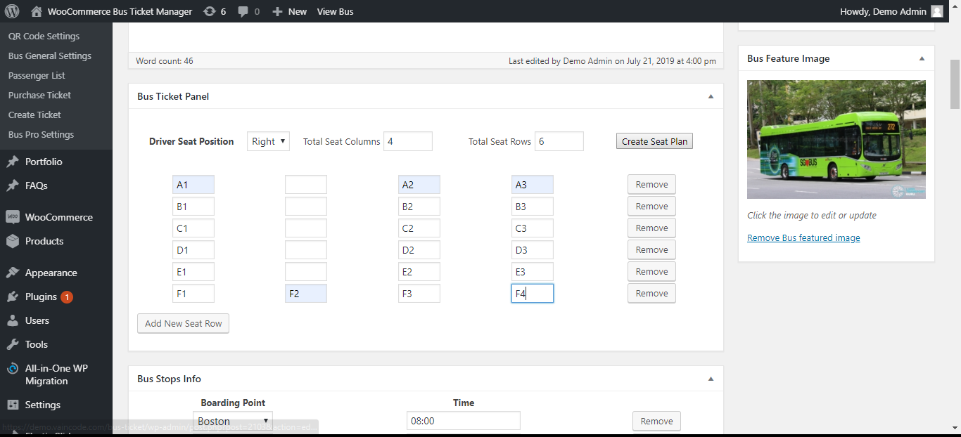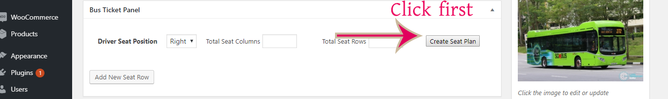 How to add bus in three column seat plane: